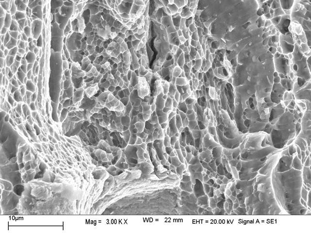 断口上记录着与裂纹有关的各种信息,通过对这些信息的分析,可以找出断裂的原因及影响因素。因此,断口分析在断裂失效分析中占据着特殊重要的地位。可以说断口分析是断裂失效分析的核心,同时又是断裂失效分析的向导,指引失效分析少走弯路。 指用肉眼、放大镜、低倍光学显微镜(体视显微镜) ,这是断口分析的第一步和基础。通过宏观观察收集了断口上的宏观信息,则可初步确定断裂的性质(脆性断裂、韧性断裂、疲劳断裂、应力腐蚀断裂等),可以分析裂源的位置和裂纹扩展方向,可以判断冶金质量和热处理质量等。 用显微镜对断口进行高放大倍率的观察,用金相显微镜及扫描电镜的为多。断口微观观察包括断口表面的直接观察及断口剖面的观察。 截取剖面要求有一定的方向,通常是用与断口表面垂直的平面来截取(截取时注意保护断口表面不受任何损伤),垂直于断口表面有两种切法。平行裂纹扩展方向截取,则可研究断裂过程。因为在断口的剖面上,能包含断裂不同的各区域。垂直裂纹扩展方向截取,在一定位置的断口削面上,可研究某一特定位置的区域。